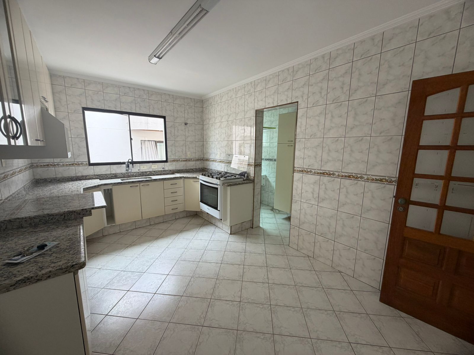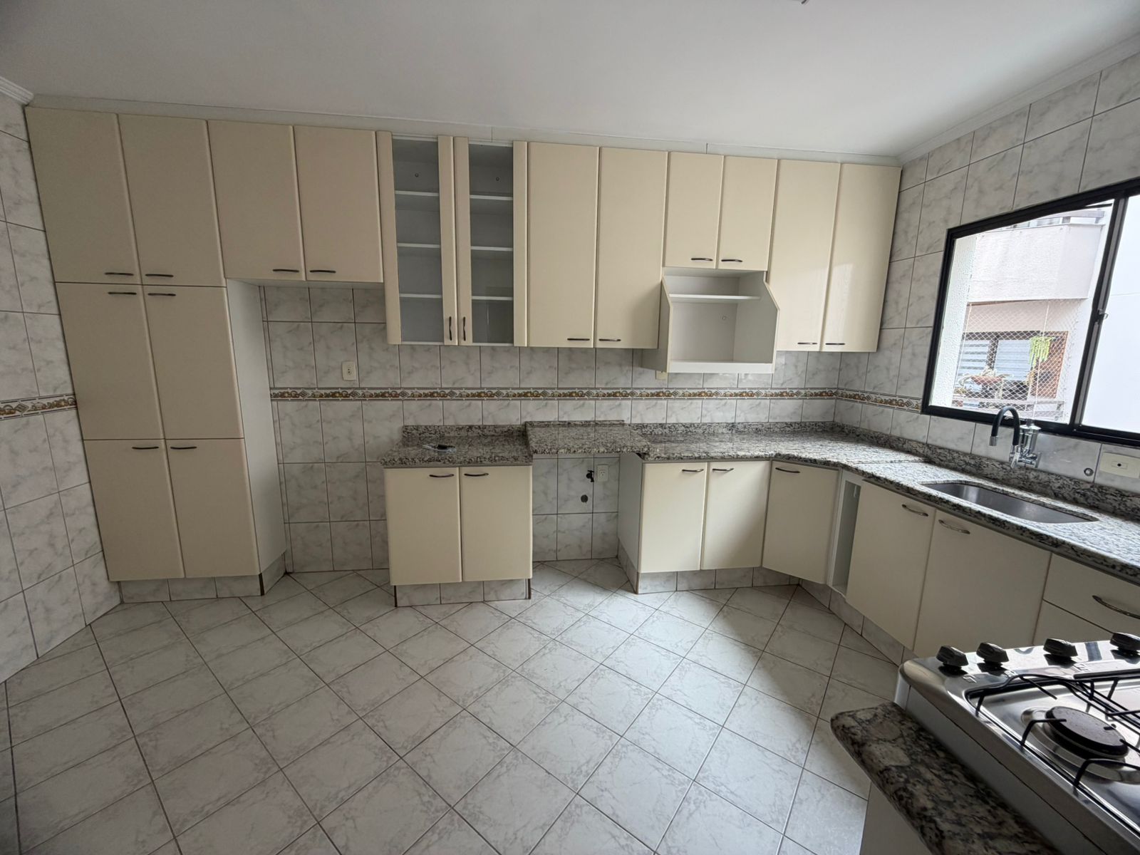 - cozinha ampla com armarios e fogão