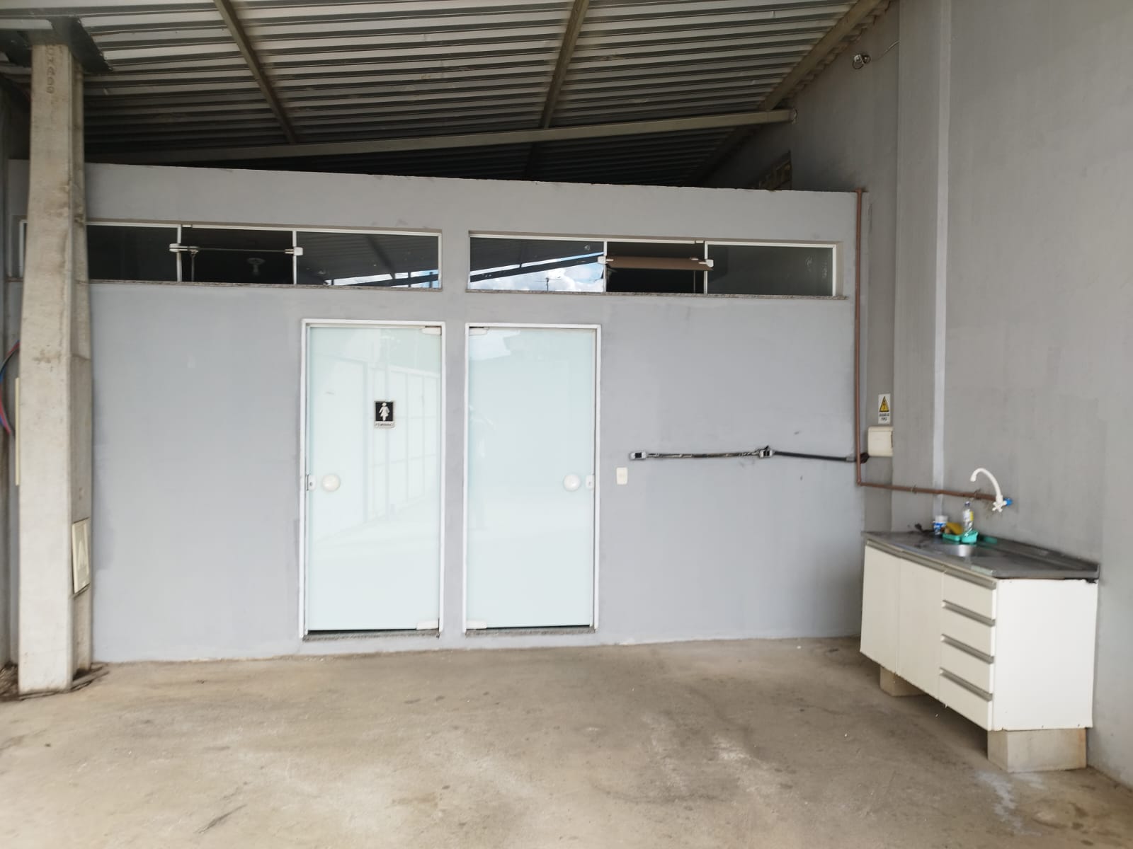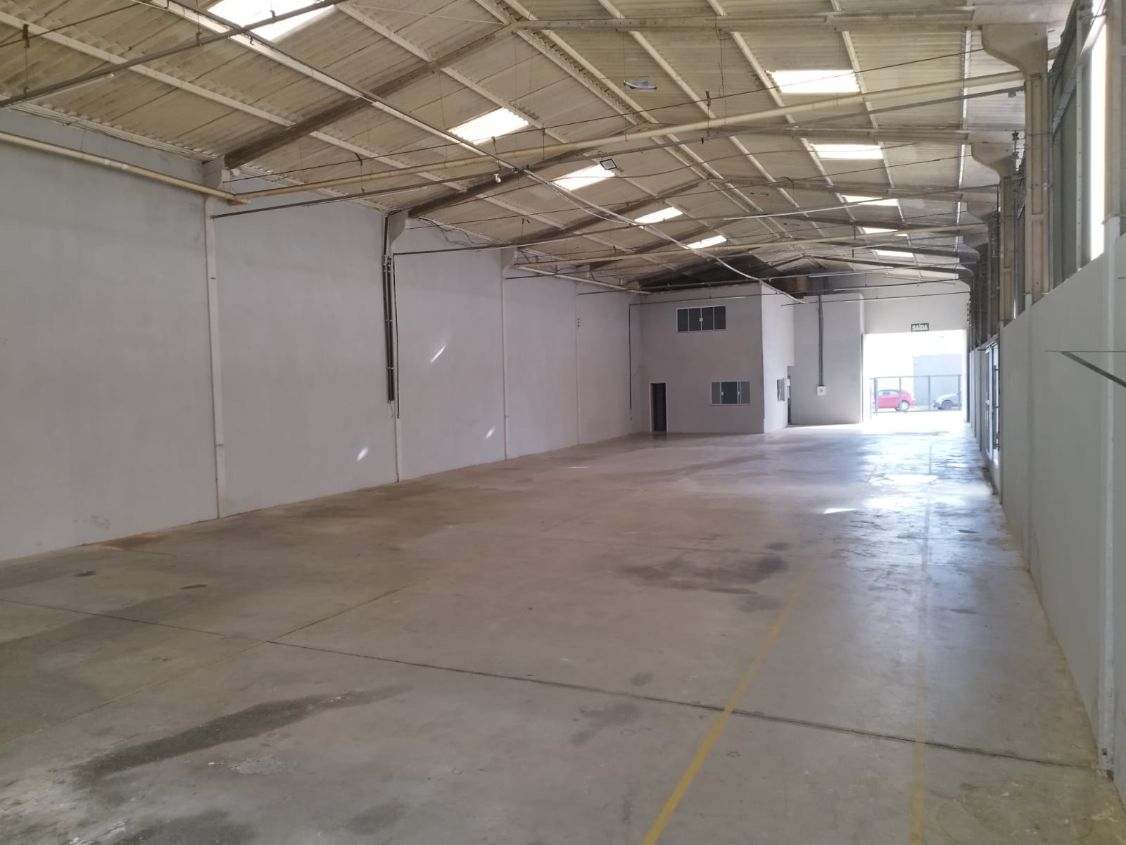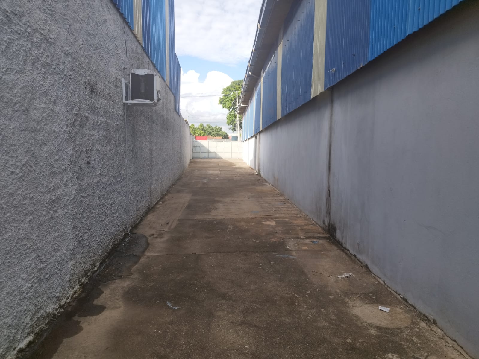 Acesso de veículos pela lateral do galpão;