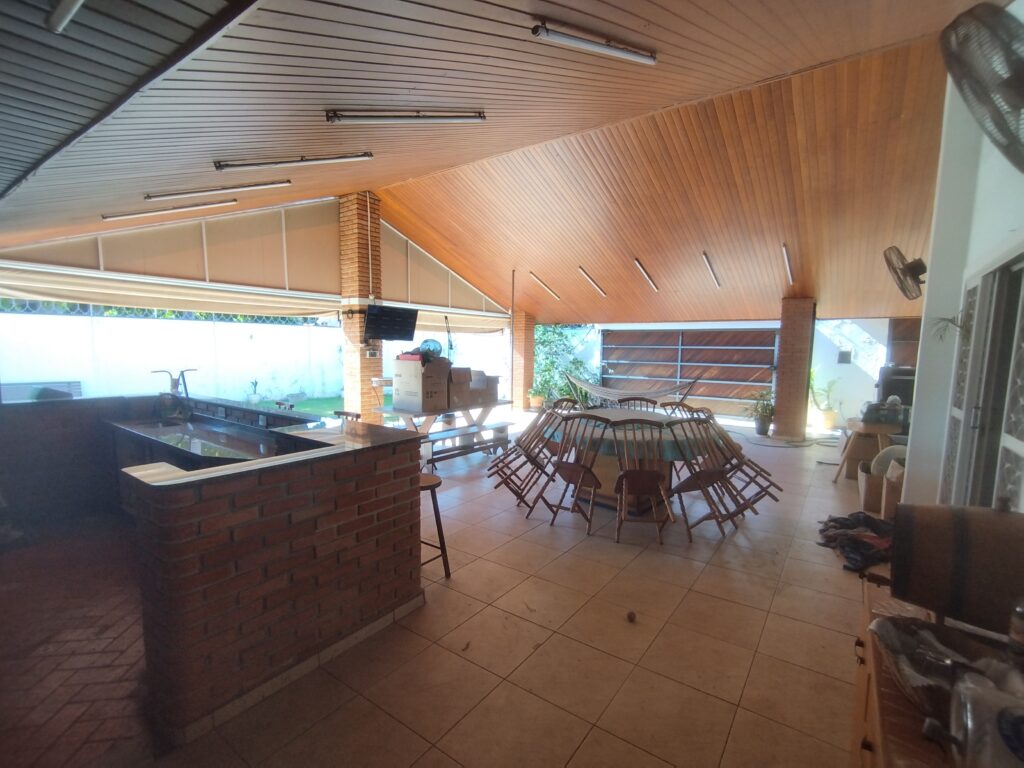 Este imóvel possui: – 2 suítes com varanda para piscina; – 1 cozinha grande; – Área de serviço; – Quarto e banheiro de empregada; – Banheiro social; – Sala 3 ambientes grandes; – No lado de fora, possui um quiosque com churrasqueira e balcão em L; – Cozinha gourmet grande; – Piscina; – Garagem para […]